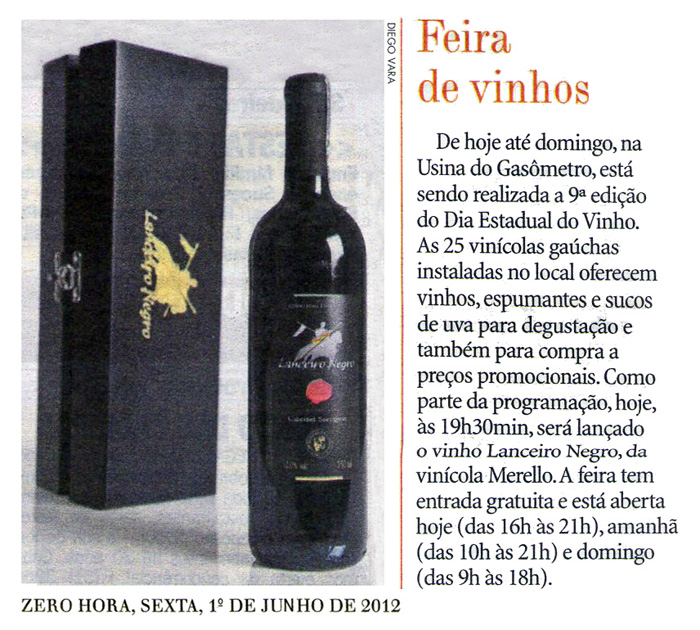 Lançamento do Vinho Lanceiro Negro no dia 01/06/2012 durante a Feira Promocional de Vinhos na Usina do Gasômetro, em Porto Alegre.